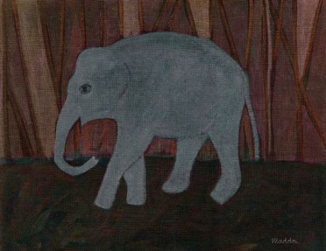 Grey Elephant / Wax resist on linen / 36 X46 cm
