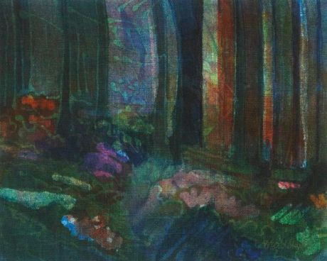 Autumn Red / Wax resist on linen / 51 X 66 cm